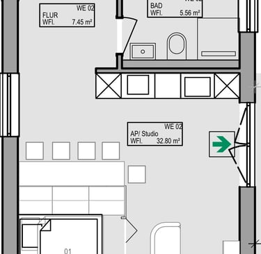 Wohnung WE8 1OG 2 Zimmer 32.57 qm