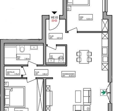 Wohnung WE2 EG 3 Zimmer 85.09 qm
