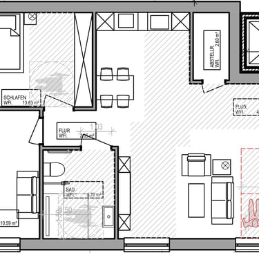2 Zimmer Wohnung und Abstellraum